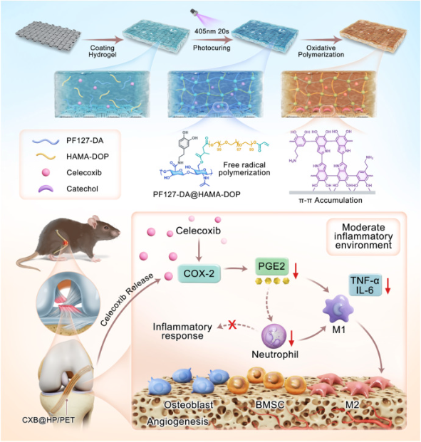 前交叉韧带(ACL)损伤是运动医学中最常见的致残性膝关节损伤之一,聚对苯二甲酸乙二醇酯(PET)人工韧带因标准化尺寸、无供区损伤等优势,已在全球数万例ACL重建手术中应用。但PET材料的生物惰性的问题,易引发微动诱导纤维化和异物反应,严重阻碍骨整合效率,成为制约其临床疗效的关键瓶颈。近日,昆明理工大学灵长类转化医学研究院张磊团队联合华东理工大学刘昌胜院士团队、复旦大学华山医院运动医学科陈天午等,在智能生物材料精准修复领域取得重要进展。相关研究成果以“Friction-Adapt...