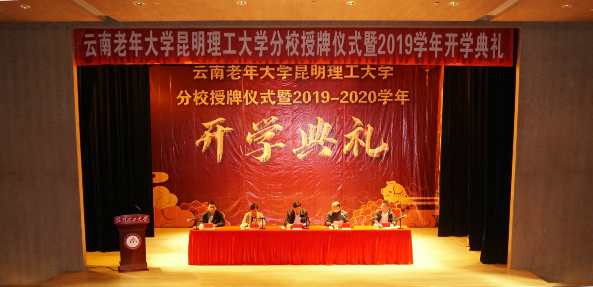 10月16日上午,昆明理工大学在莲华校区伍集成会堂二楼报告厅举行了云南老年大学昆明理工大学分校授牌仪式暨2019-2020学年开学典礼。云南省委老干部局副局长王从文、云南老年大学校长伍敏,昆明理工大学党委常委、副校长、云南老年大学昆明理工大学分校名誉校长周峰越出席会议。云南省老年大学相关负责工作人员、任课教师、2019级学员代表约150人参加开学典礼。