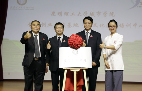 9月8日,昆明理工大学城市学院创新创业实践基地—茶文化交流培训中心揭牌仪式在新迎校区举行。校党委常委、副校长牛治亮,云南饮源斋职业培训学校董事长、城市学院84级优秀校友盛洁女士出席,学校相关职能部门负责人及城市学院领导班子成员、师生代表参加揭牌仪式。