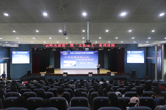 2019年5月16日,云南日报社文艺部主编郑千山应邀在昆明理工大学呈贡校区公教楼小剧场为300余名师生代表作题为“中华优秀传统文化中的革新精神”的专题讲座。
