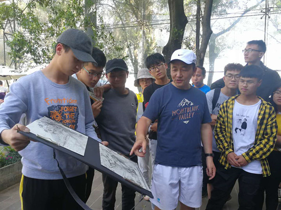 5月18日,副校长周峰越教授来到昆明海埂公园,与正在上《美术2》素描风景写生课的我校建筑学院18级园林专业的同学们进行了交流并一同现场写生。
