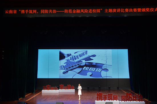 日前,云南省“携手筑网,同防共治——防范金融风险进校园”主题演讲比赛决赛暨颁奖仪式在云南财经大学举行。昆明理工大学校团委选送的理学院2019级李梦雪同学代表学校参赛,并荣获主题演讲比赛一等奖。