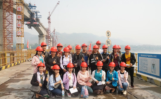 孔子学院师生认真听取工程师项目讲解,参观湄公河大桥的施工现场,感受中老铁路标准化、专业化的的施工和管理。参观结束,学员们对未来铁路通车充满了期待和憧憬,对“一带一路”有了更深的认识,实地体会了学习汉语、了解中国文化、学习专业知识的重要性。