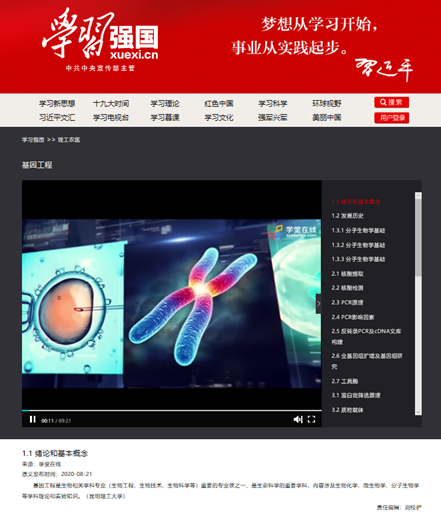 近日,昆明理工大学生命科学与技术学院柳陈坚教授主讲的《基因工程》上线“学习强国”。该教学团队共有8名成员,包括柳陈坚、李晓然、杨恩、罗义勇、冯阳、潘卉六名教授以及两名研究生助教。