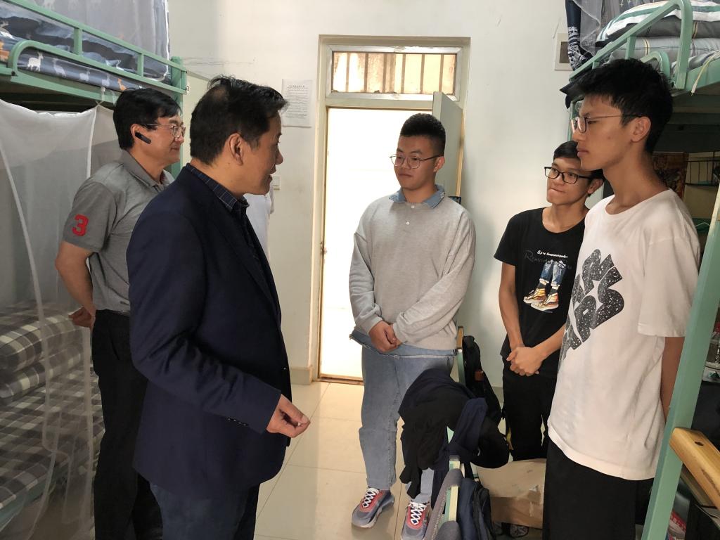 在学生社区,易健宏副校长和2020级新同学亲切交流,给同学们送上节日祝福,勉励同学们好好学习;叮嘱同学们做好疫情防控常态化下的个人防护,牢记安全细节无小事,注意安全;希望同学们弘扬健康向上的宿舍文化,让学生社区成为安全阳光的温馨家园。