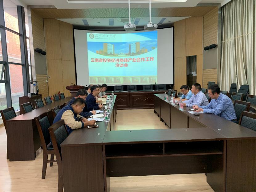 10月13日,云南省投资促进局程永流副局长一行到我校资产公司洽谈硅产业合作,昆明理工大学党委常委、副校长马文会出席,省投资促进局产业处负责人、学校资产公司及冶能学院相关负责人参加。