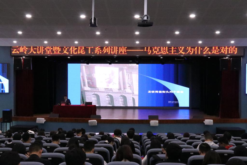 10月15日下午,“云岭大讲堂”暨“文化昆工”系列讲座第八十讲在昆明理工大学呈贡小剧场开讲。云南省著名马列主义研究专家樊勇教授以《马克思主义为什么是对的》为题,与现场200多名听众进行了长达3小时的交流。