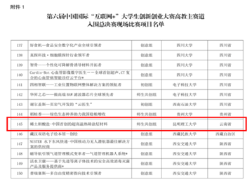 10月21日,教育部公布第六届中国国际“互联网+”大学生创新创业大赛总决赛现场比赛项目名单,昆明理工大学“稀土钽酸盐-中国首创的超高温热障涂层材料”项目作为云南省唯一入围高教主赛道项目,将代表云南省参加11月在广州华南理工大学举行的全国现场总决赛。