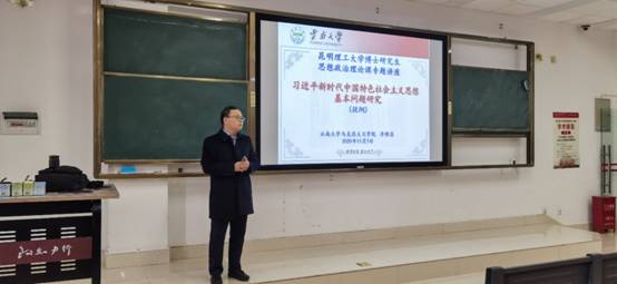 11月3日下午,云南大学李维昌教授应邀为昆明理工大学博士生班《中国马克思与当代》课程做“习近平新时代中国特色社会主义思想基本问题研究”专题学术报告。2020级博士研究生以及马克思主义学院部分研究生聆听报告。