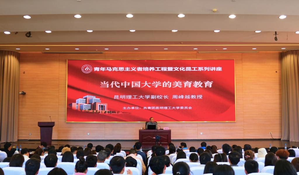 11月12日下午,昆明理工大学青年马克思主义培养工程暨文化昆工专题讲座在昆明理工大学呈贡校区图书馆蓝色报告厅举办。活动邀请到校党委常委、副校长周峰越教授作为主讲嘉宾,为师生们作题为《当代中国大学的美育教育》的专题讲座。相关职能部门负责人、校团委工作人员、各基层团委负责人、“青马工程”菁英班全体学员、校级学生组织骨干、建筑与城市规划学院、艺术与传媒学院的老师和同学等共计260余人参加了本次讲座。