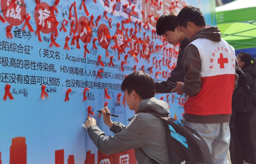 12月1日是第33个“世界艾滋病日”。为提高知晓率,增强同学们的防范意识,昆明理工大学医院组织学生“红十字会”开展了“携手防疫抗艾,共担健康责任”为主题的宣传活动,夏雪山副校长到现场参加活动并进行指导。