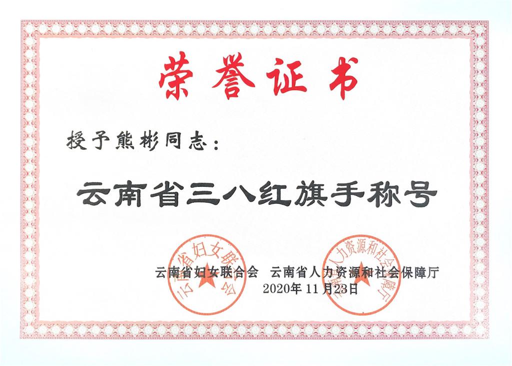 为表彰先进,树立榜样,进一步凝聚团结拼搏、砥砺奋进的强大巾帼力量。近日,云南省妇联联合云南省人力资源和社会保障厅共授予全省99名同志2020年度云南省三八红旗手称号,其中昆明理工大学管理与经济学院熊彬教授获此殊荣。