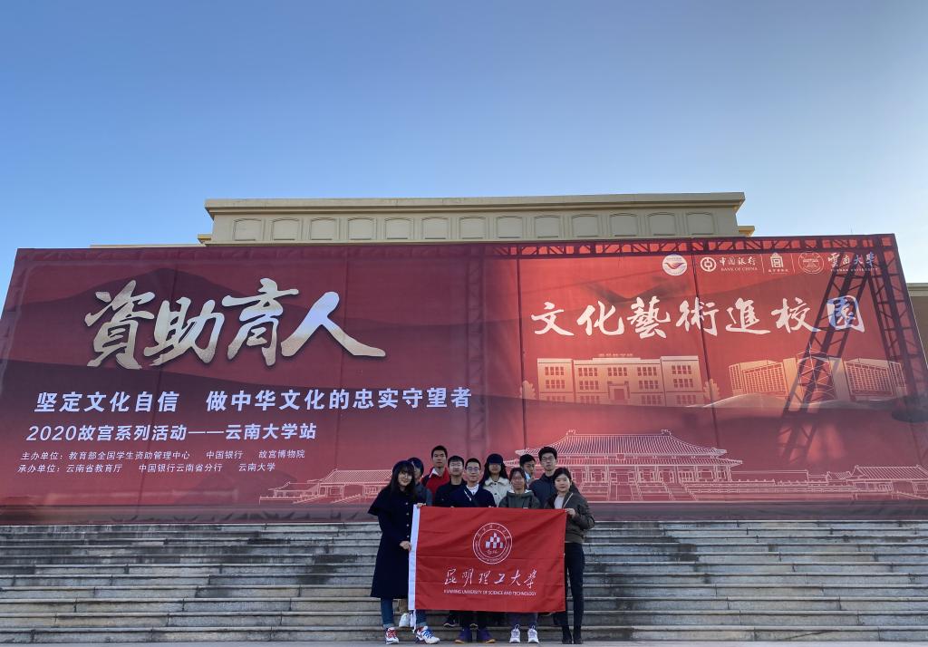 近日,昆明理工大学11名师生代表到云南大学呈贡校区参加了由全国学生资助管理中心和中国银行联合举办的“资助育人·文化艺术进校园——2020故宫系列活动”。