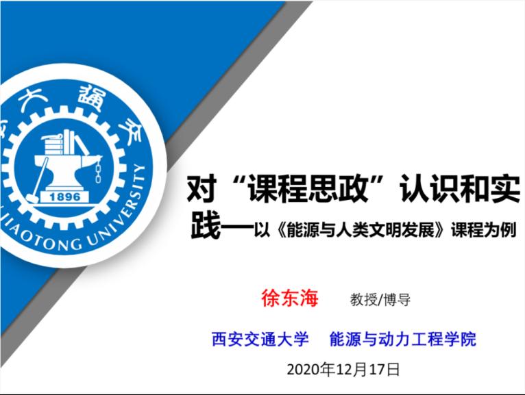 第三场报告中,西安交通大学能动学院的徐东海老师以《能源与人类文明发展》课程为例,深入讲解了对课程思政的认识和实践。