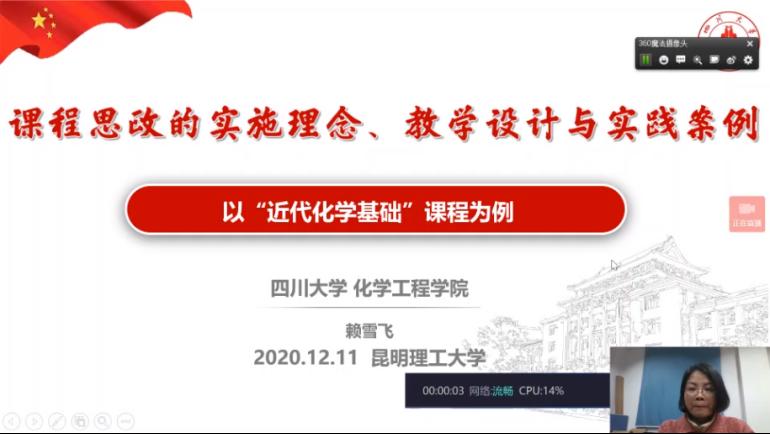 四川大学化学工程学院的赖雪飞老师以“近代化学基础”课程为例,详细介绍了课程思政建设的思路和教学设计的经验,丰富的案例分享使老师们获益匪浅。
