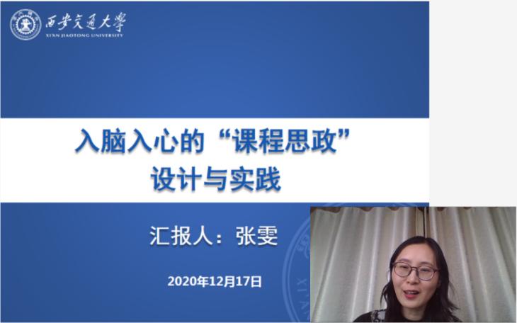 第四场报告由西安交通大学化学学院的张雯老师以“入脑入心的‘课程思政’设计与实践”为题,介绍了基于学科的课程思政建设思路,同时还带来了丰富的案例和经验分享。