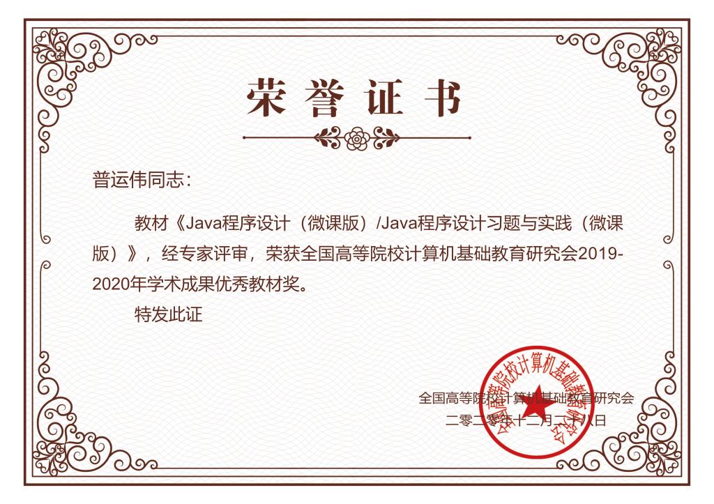 12月28日,全国高等院校计算机基础教育研究会2019-2020年学术成果推优活动评选结果揭晓。昆明理工大学普运伟教授主编的教材《Java程序设计(微课版)/Java程序设计习题与实践(微课版)》荣获优秀教材,赵晓侠副教授的《MySQL数据库设计与应用》,罗一丹老师的《Python数据可视化》课程思政教学案例荣获年度优秀课程思政教学案例。