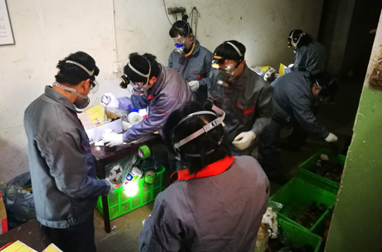 为进一步排除学校安全和环保隐患,维护学校安全稳定,昆明理工大学国有资产与实验室管理处、分析测试中心持续对莲华校区冶能学院地下仓库各类不明废弃化学品进行鉴定和清理工作。
