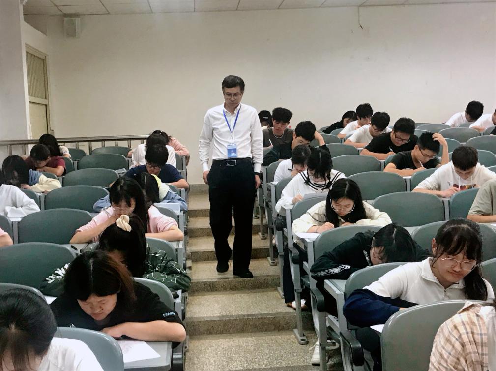 7月2日下午,期末考试进入第五天, 校党委常委、副校长马文会到呈贡校区考试现场巡视检查考风考纪,先后到考场、监控室、考务办公室,看望慰问坚守岗位的教师,并认真查看学生试卷作答情况。