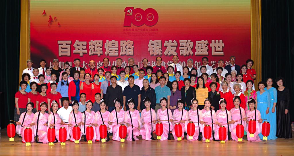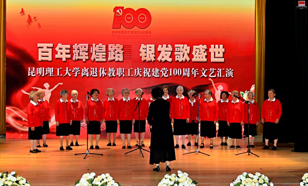 7月6日上午,由昆明理工大学离退休教职工党委、离退休工作处(部)主办、老年艺术协会承办的“百年辉煌路 银发歌盛世”离退休教职工庆祝建党100周年文艺汇演在莲华校区伍集成会堂举行。