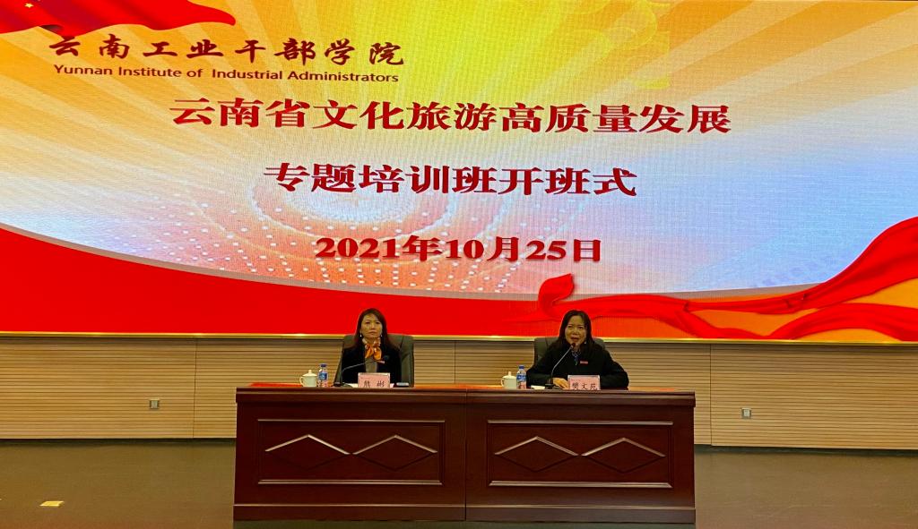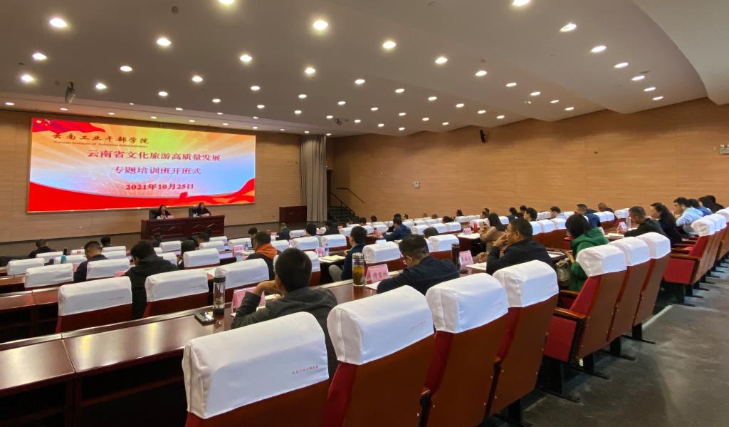 10月25日,由云南省委组织部主办的“云南省文化旅游高质量发展专题培训班”在昆明理工大学呈贡校区云南工业干部学院开班。云南省文化和旅游厅及相关厅委办局业务处室负责人、16个州市及部分县区文旅系统负责人和来自部分州市县区干部教育机构观摩学习计划参训学员,共计60余人参加培训。