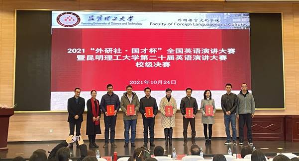 10月24日上午,“外研社·国才杯”全国英语演讲大赛暨昆明理工大学第二十届英语演讲大赛校级决赛在图书馆报告厅举行。本次大赛由外国语言文化学院承办,来自教务处、研究生院、校团委以及生命科学学院、法学院、材料工程学院、冶金与能源学院、环境工程学院等专业学院的老师和嘉宾参加大赛。