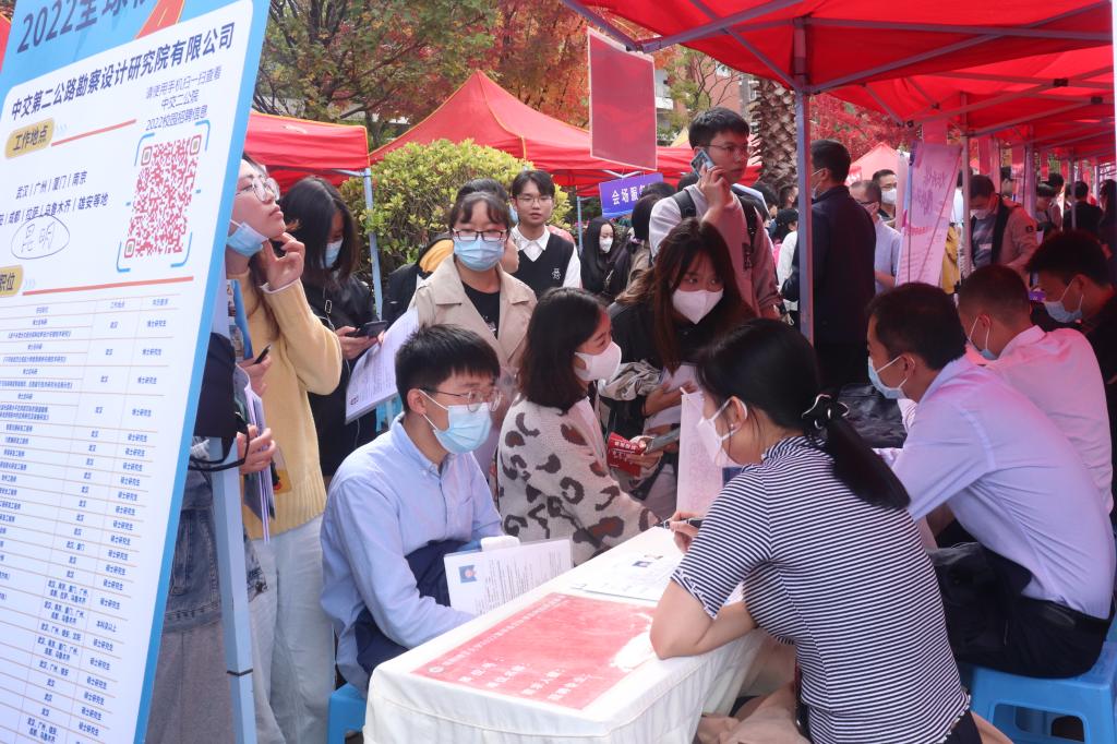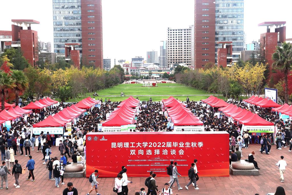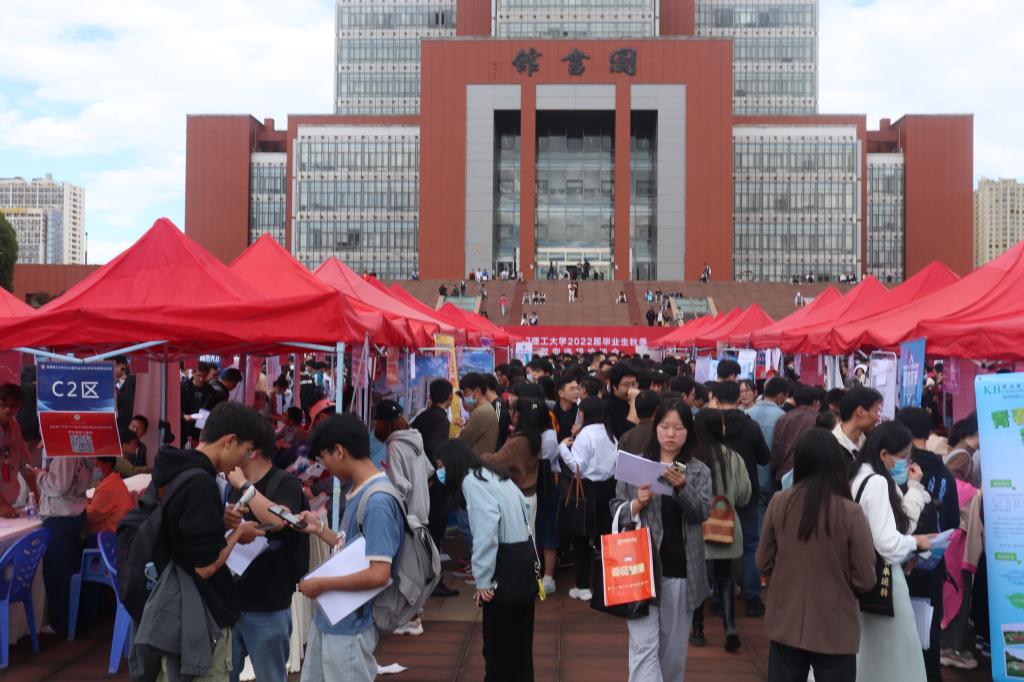 10月29日,由昆明市人力资源和社会保障局、云南省大中专毕业生就业服务中心、昆明理工大学就业指导中心联合主办的“2022届高校毕业生秋季双向选择洽谈会”在昆明理工大学呈贡校区举行,来自省内外240余家用人单位前来参会,有效岗位需求人数近1万人,涉及我校全部专业,为毕业生带来优质岗位和最新人才政策。现场人潮涌动,招聘氛围热烈,学校近万余名学生参会求职。