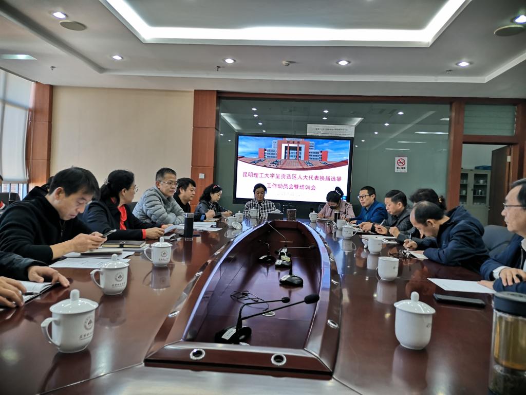 校工会负责人对2021年9月以来,昆明理工大学呈贡校区人大选举工作领导小组有关工作情况进行介绍,按照学校呈贡选区开展选举工作的指导思想和基本原则,对选举时间安排、工作步骤、工作要求进行了安排和部署。