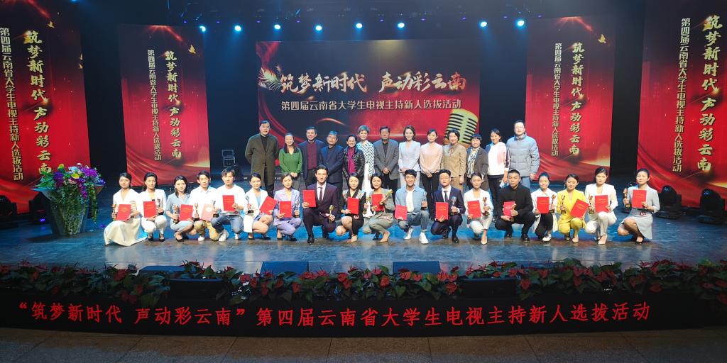 11月9日,“筑梦新时代 声动彩云南”第四届云南省大学生电视主持新人选拔活动终选比赛在昆明教育电视台演播厅落下帷幕。经过激烈角逐,来自昆明理工大学城市学院的霍明慧获得“金话筒”选手称号,昆明理工大学艺术与传媒学院杨敬言、武小焱分别获得“银话筒”、“铜话筒”选手称号,朱丹华、孙雅萌获优秀指导教师奖。
