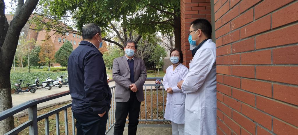11月10日上午,校党委副书记、校长王华,副校长夏雪山一行来到校医院,检查指导教职工体检工作,并看望了正在体检的教职工。