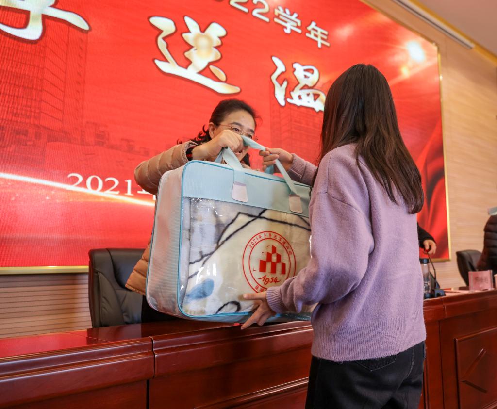 学校心系家庭经济困难学生,为表达对他们的慰问和关怀,特别准备了御寒的毛毯。毛毯将陆续送至2287名2021级新生手中。下一步学生工作部(处)将进一步加强资助育人工作,帮助经济困难学子解决困难,完成学业。