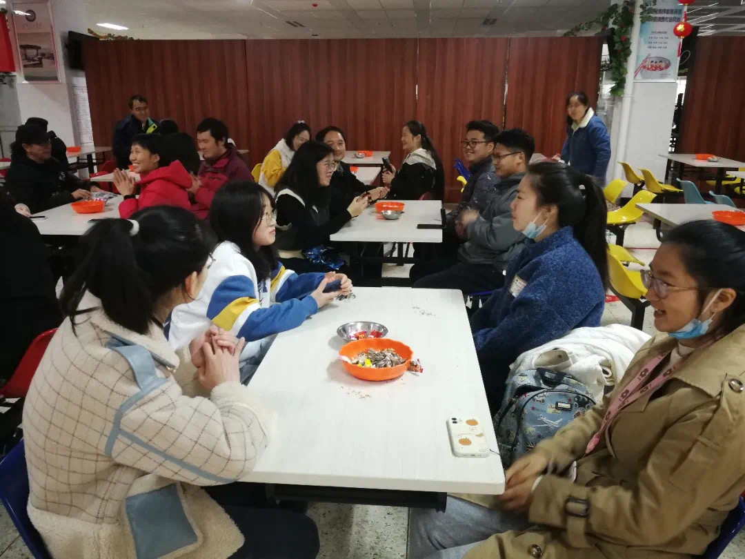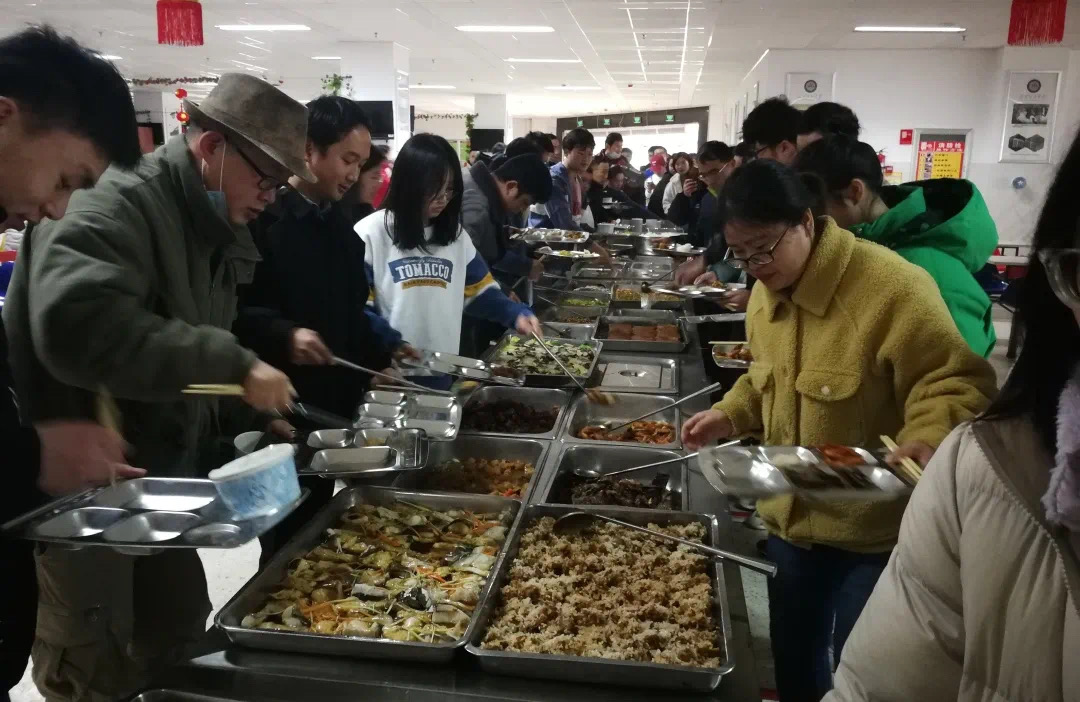最后,王启梁代表学校向留校学生送上了节日的祝福,并和同学们一起吃年夜饭。