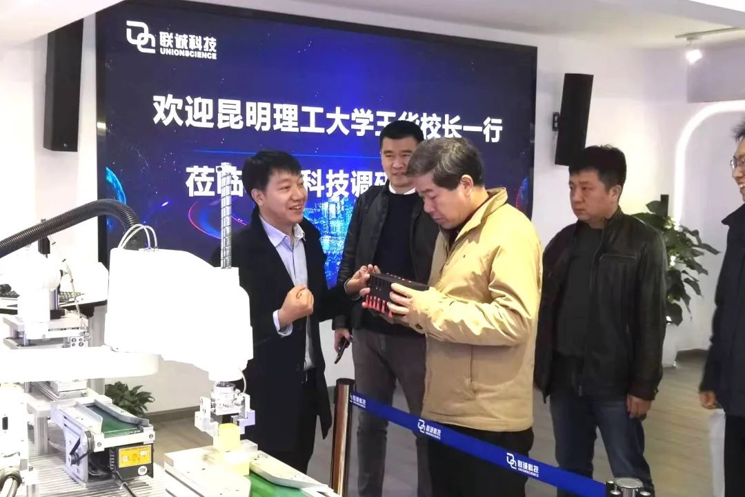 11月16日上午,校党委副书记、校长王华一行前往由昆明理工大学信息工程与自动化学院邵宗凯副教授领衔创办的昆明联诚科技股份有限公司(以下简称联诚科技),调研数字经济和智慧工厂技术转化应用情况。