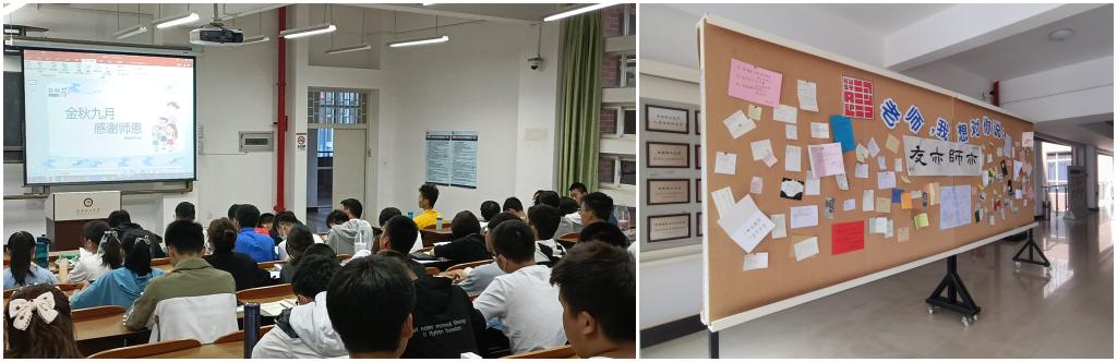 一桌一讲台,一师一生情。冶金与能源工程学院、电力工程学院、食品科学与工程学院等学院组织同学们用贺卡、鲜花为老师送上祝福。“老师您好,祝您节日快乐”,一句简单的话语,包含浓浓的祝福与深情。信息工程与自动化学院、建筑与城市规划学院、国际学院等通过开展书写明信片、书信等活动传达对老师的感恩与祝福。建筑工程学院、民航与航空学院等通过开展主题演讲、唱响祝福的歌,表达对老师最诚挚的敬意。