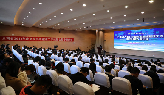 12月27日,由省委高校工委主办,云南省高校易班发展中心承办的云南省2018年度高校易班建设工作推进会在昆明理工大学呈贡校区云南工业干部学院教研基地101报告厅举行。教育部易班发展中心负责人朱明伦,昆明理工大学党委副书记李莉,省委高校工委大学生工作部部长侯炳霞和全省75家高校易班建设工作牵头部门负责人、指导教师共计250余人参加会议。