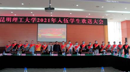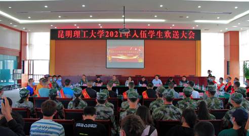 9月6日上午,昆明理工大学在呈贡校区举行2021年入伍学生欢送大会。校党委副书记李莉,校党委常委、副校长易健宏,火箭军某部接兵团马文亮少校出席大会。学生工作部(处)、武装部负责人,辅导员代表,在校学生和国防后备营学生代表、入伍学生代表、易班工作站学生代表以及部分学生家长代表参加欢送大会。