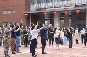 现场,入伍同学一起响唱响《强军战歌》。2021年入伍学生代表在的热烈掌声中登上悬挂有“参军报国,无上光荣”的专车开赴军营。