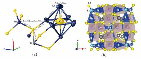 截至2021年,银黝铜矿系列矿物已知成员有6个。汞银黝铜矿-Ag6(Cu4Hg2)Sb4S13是黝铜矿超族银黝铜矿系列的一员,其有别于已知成员的独特之处在于Ag占据M(2)、Hg作为电荷补偿占据M(1)位。汞银黝铜矿属立方晶系(图1),空间群I