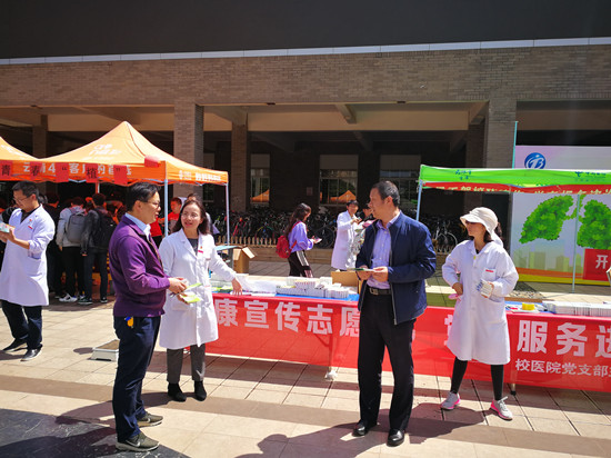 为深入开展结核病和艾滋病的防治宣传及健康教育工作,进一步提高师生对结核病和艾滋病防治知识的知晓率,昆明理工大学校医院于4月4日中午在呈贡校区怡园食堂门口开展了一场结核病防治和艾滋病知识的大型宣传活动。学校党委常委、副校长杨斌现场对活动进行安排部署。生命科学与医学部、学生工作处、校团委和医学院等部门积极组织参与配合。