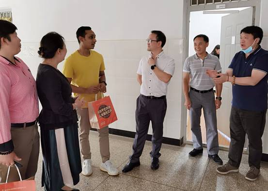 学院负责人和教师代表到学生宿舍走访,与留学生交心谈心、共叙师生情谊、共迎中秋佳节。重点关心关爱学生在校期间的身心健康,并特别强调假期安全教育,提醒留学生们遵守中国法律法规以及疫情防控相关要求,做好防疫,严格遵守学校疫情防控及安全管理规定。