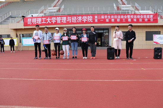 2018年10月27日上午,昆明理工大学管理与经济学院举办第二届学生田径运动会和首届教职工趣味运动会。学院全体党政工领导、各系党支部书记、系主任、辅导员,班主任以及各系老师,学院17,18级全体学生共计600余人出席了院运动会的开幕式。