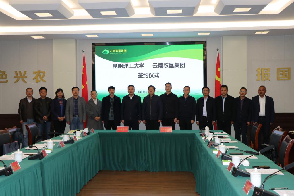 11月17日下午,昆明理工大学与云南农垦集团战略合作协议签约仪式在云南农垦集团举行。昆明理工大学党委副书记、校长王华,云南农垦集团党委书记、董事长陈祖军,党委副书记、总经理、副董事长周建国,党委副书记、工会主席陈云忠,副总经理高绍周出席签约仪式。云南农垦集团相关部门及分公司负责人,昆明理工大学校办、科技院、资产公司、农工学院、食品学院、马克思主义学院负责人参加签约仪式。