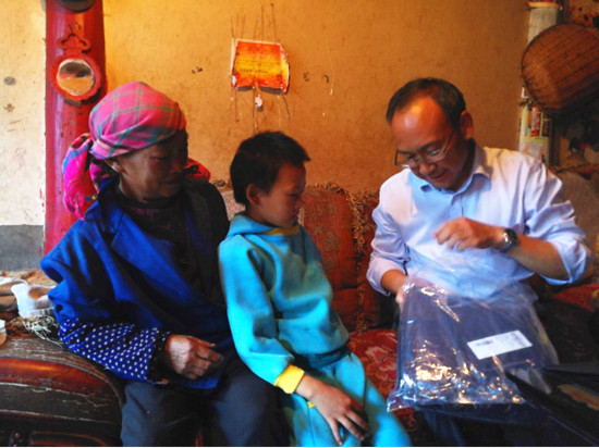 随后,杨斌副校长一行深入兔场村接对帮扶的困难群众家中,与帮扶对象亲切交谈,详细了解他们家庭经济收入来源、家庭成员、子女工作、急需解决的实际困难等方面的情况,向贫困户讲解了精准扶贫的相关政策,并向刘鑫小朋友赠送了羽绒服,殷切期望他发奋图强、学业有成。杨斌副校长认真听取了困难群众对扶贫工作的意见和建议。鼓励他们树立乐观积极的生活态度,克服困难,积极改善生活,早日脱贫致富。