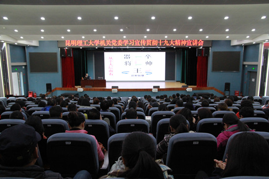 12月7日下午,按照《中共云南省委高校工委办公室关于学习贯彻党的十九大精神云南教育系统宣讲团高校宣讲安排的通知》及学校《关于党的十九大精神宣讲安排的通知》要求,机关党委组织全体教职工近310人在呈贡校区公教楼小剧场聆听昆明理工大党校校长殷国禺教授宣讲学习宣传贯彻党的十九大精神体会。