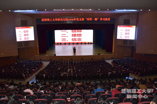 为进一步推进“两学一做”学习教育和“基层党建推进年”等有关工作,研究生院党委于2016月11月12-13日在昆明理工大学呈贡校区红土会堂开展了深入推进“两学一做”集中学习教育。研究生院教工党员、研究生党建协调委、研究生党支部支委、研究生入党积极分子共计1200余人参加了本次学习教育活动。