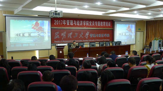 5月25日下午,管理与经济学院开展了2个专题的党员教育培训,全院师生党员共200余人参加。2个专题的党员教育培训中,《以四个全面方略为引领 扎实推进全面从严治党》的专题教育培训用纪录片《大道之行》开篇,围绕习近平总书记治国理政新思想新理念新战略的重大意义、“四个全面”是党在新形势下治国理政的总方略、党要管党从严治党,保持党的先进性和纯洁性、巩固“两学一做”成果,创建一流基层党建等四个方面,对学院全体党员做了深入的讲解和阐述,最后提出立场要坚定、头脑要清醒等10点要求,号召全体党员打铁还需自身硬。以《昆明理工大学管理与经济学院“十三五”发展规划与实现路径》的专题教育培训中,主讲人全面回顾了管经学院“十二五”期间取得的成绩,深入剖析了学院目前存在的问题及面临的困难和挑战,根据学院目前的发展基础和发展环境,提出学院“十三五”发展思路和目标定位。主讲人强调,在学院党委领导下,全体党员要发挥先锋模范带头作用,带动全体师生统一思想、真抓实干,为实现管理与经济学院“十三五”发展规划做出应有的贡献。