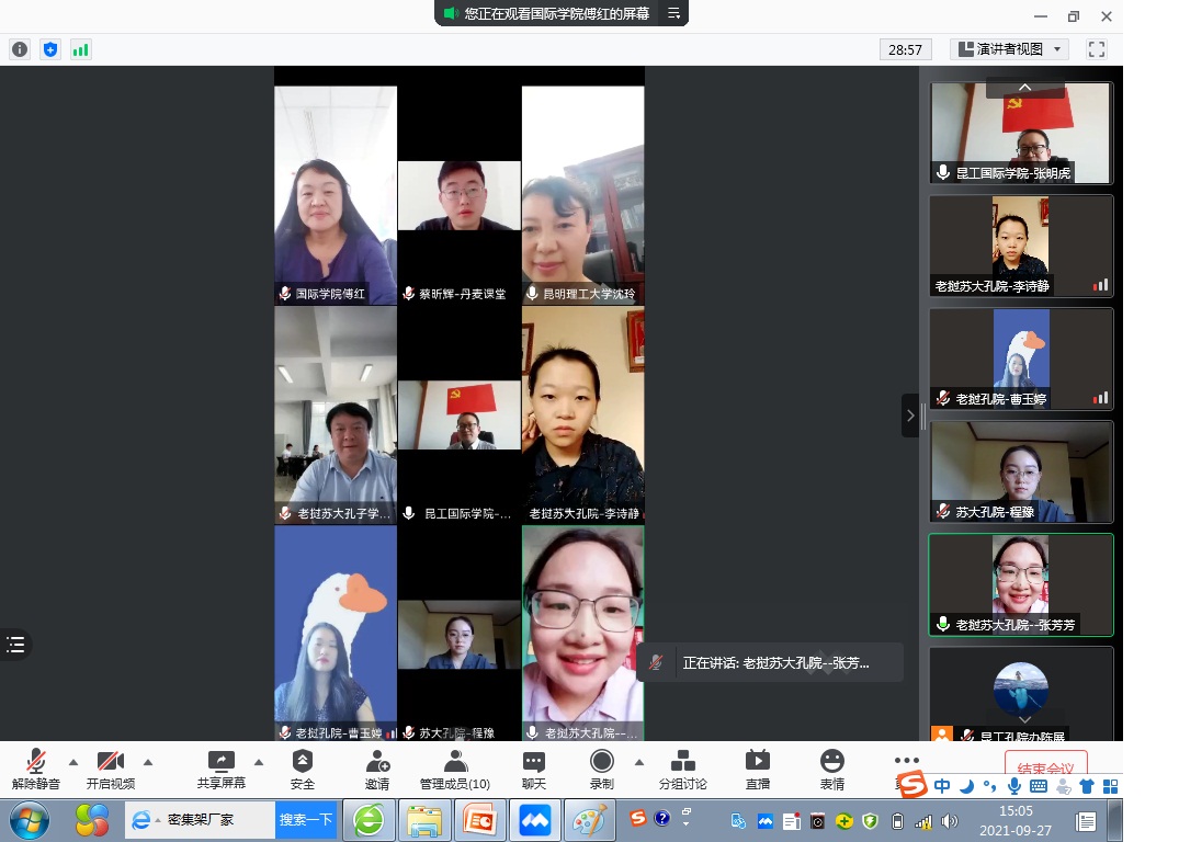 9月27日下午,昆明理工大学党委常委、副校长易健宏通过视频连线,与老挝苏发努冯大学孔子学院、丹麦NEXT教育集团巴勒鲁普校区孔子课堂的国际汉语教师及志愿者们云端交流座谈,在国庆节即将来临之际,代表学校表达节日问候,并向疫情期间仍在国外坚守岗位的同事们表示敬意。