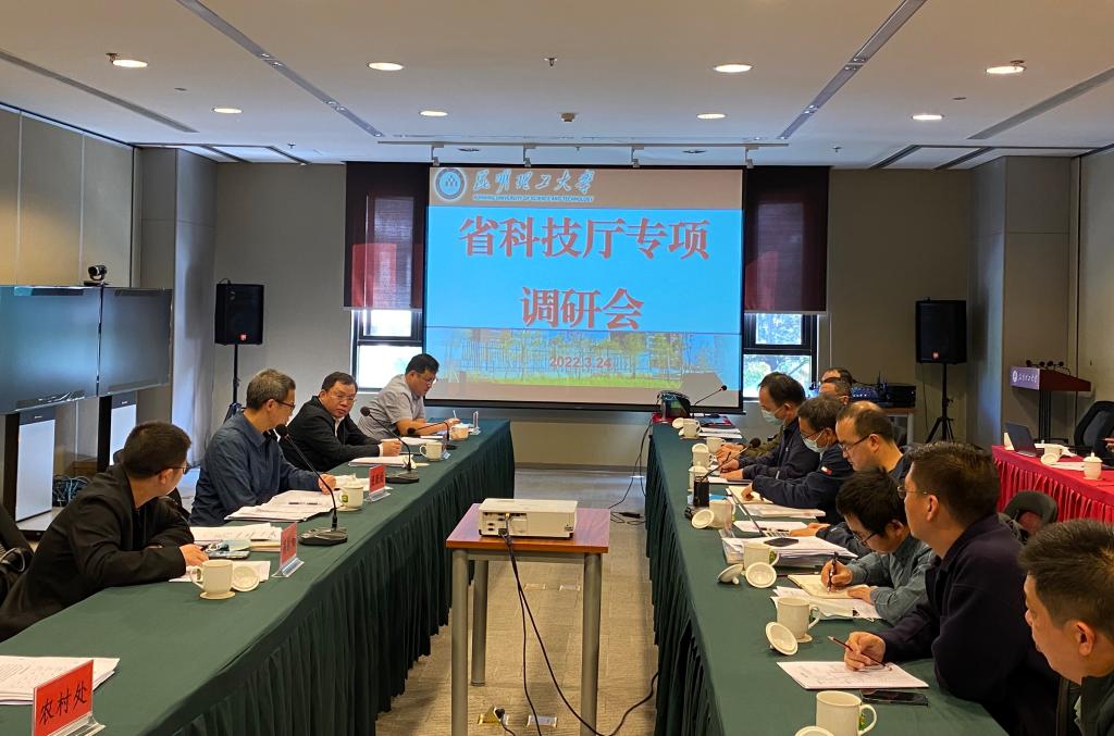 3月24日,省科技厅调研组到昆明理工大学调研指导科技专项推进工作并在莲华校区伍集成会堂召开座谈会,校党委常委潘学军出席会议,省科技厅资配处处长尚朝秋、社发处处长成民、高新处和农村处负责人以及学校科技院、第一批拟立项项目负责人参加了会议。