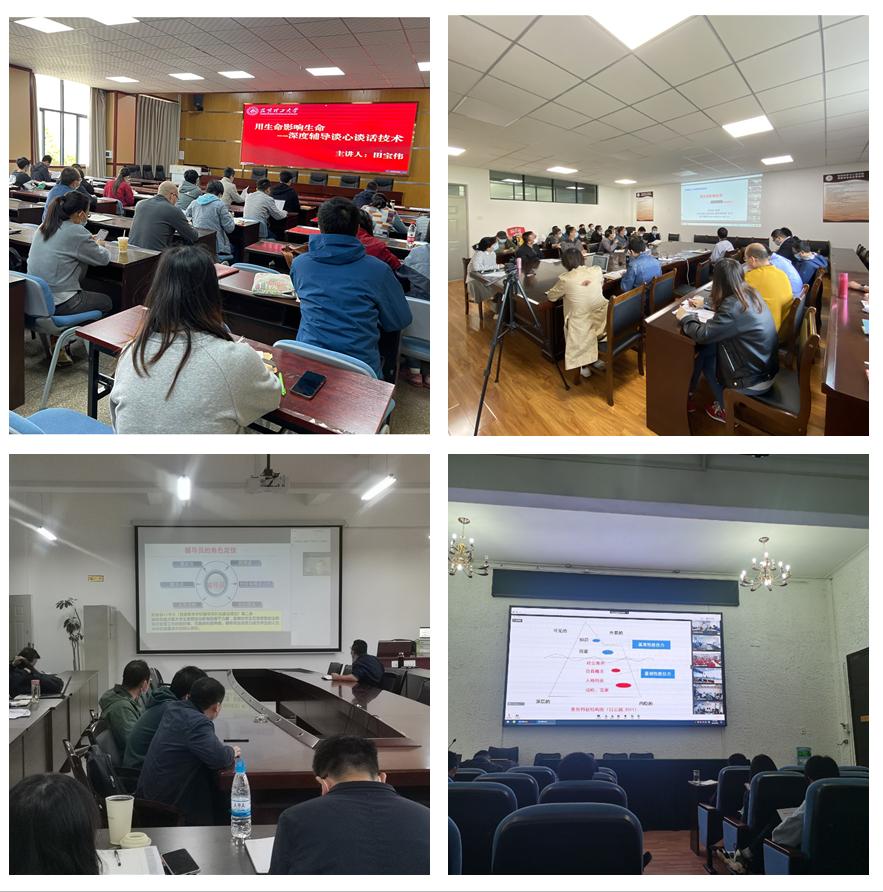田宝伟从《普通高等学校辅导员队伍建设规定》切入主题,指出辅导员和班主任不仅具有教育管理身份,也要做学生的知心朋友,辅导员和班主任的工作,是用生命影响生命的过程。他以理论阐释结合事例的方式,详细讲解了辅导员、班主任如何开展深度辅导工作,如何与学生更好交流的七个方法。田宝伟强调,辅导员、班主任的工作中爱比技巧更加重要,应该不断往内心贮存爱并把爱传达到学生,用爱和关怀为学生着想、帮助学生。