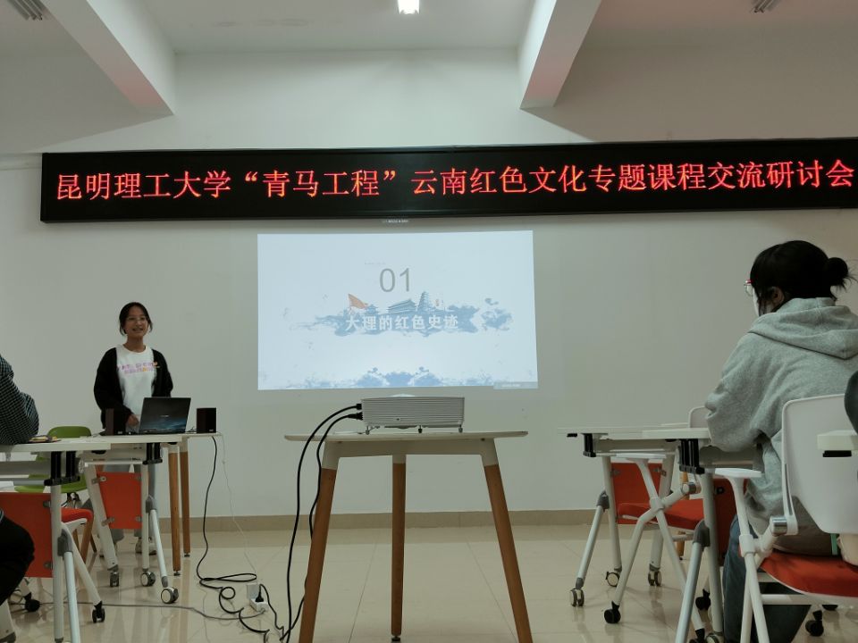 昆明理工大学“青马工程”云南红色文化专题课程自2021年12月启动,由校团委组织第十一期菁英班学员开展省内红色文化资源整理工作,学员以小组为单位,深入挖掘红色教育基地、先进人物事迹等省内红色文化资源。本次研讨会上,各组学员就前期整合的资源进行汇报分享,同时就云南红色文化资源融入高校红色教育的可行方案及实践探索等方面作了深入探讨交流。